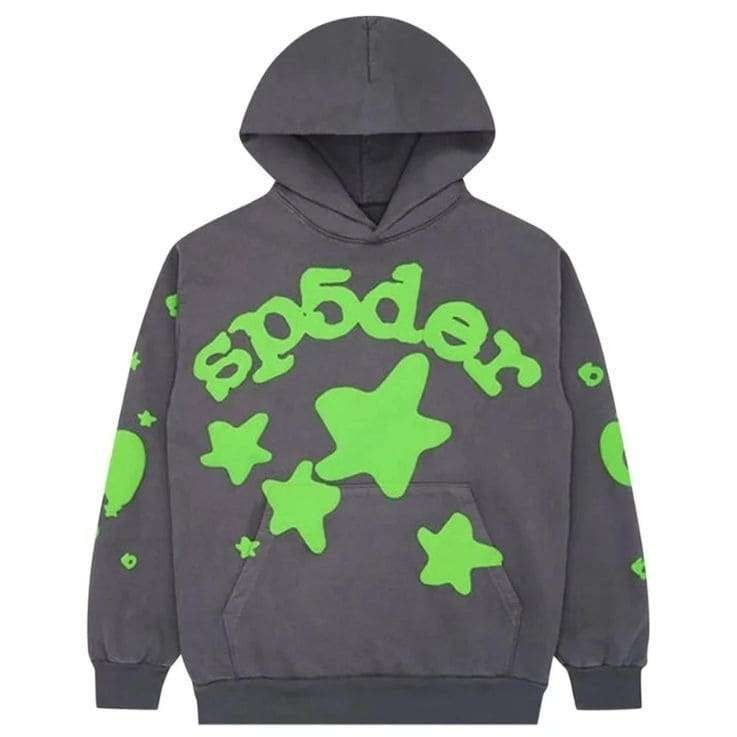 - The Unboring Black Sp5der Hoodie: A classic redefined. While universally stylish, the black variant avoids being gloomy thanks to its intricate details. The scattered stars and iconic spider graphic ensure it’s anything but basic.